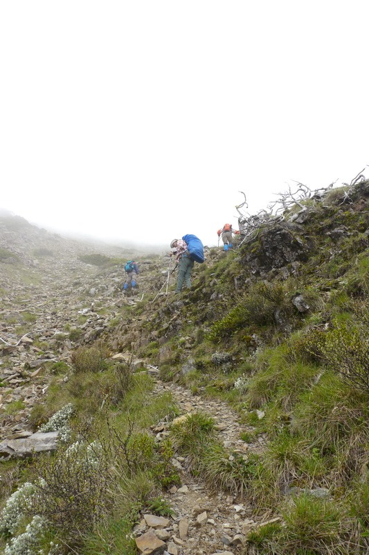 其實,今天的行程也算是挺輕鬆的,只是走到雪山山莊舊址而已,所以下午多安排了雪山南峰的行程走走,才不會太過糜爛,而且老天爺很給力,就在我們爬完雪山南峰後,才開始下雨,此時我們已經躲在外帳內煮食晚餐了,幸好雨沒有下很久,意思下個雨而已~^^